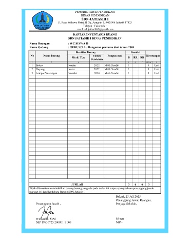 ruangan ini dan Bendahara Barang SDN Jatiasih I