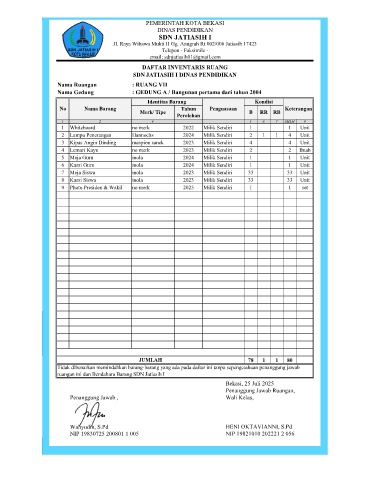ruangan ini dan Bendahara Barang SDN Jatiasih I
