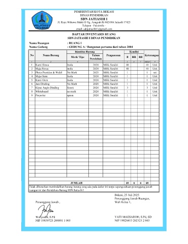 ruangan ini dan Bendahara Barang SDN Jatiasih I