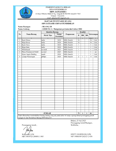 ruangan ini dan Bendahara Barang SDN Jatiasih I