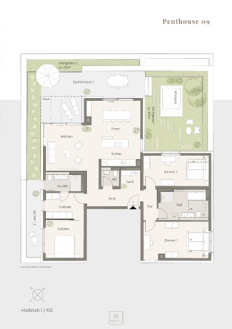 Diele 9,23 m² Ein üppiger Dachgarten umgibt einen DF Flur Wohnfläche: