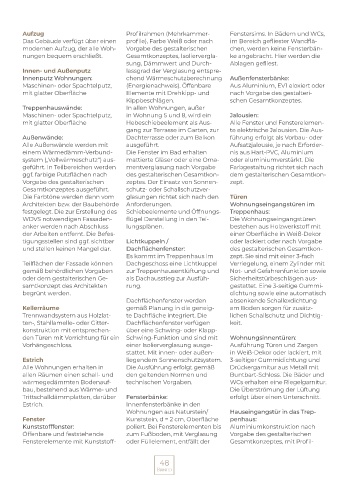 festgelegt. Die zur Erstellung des Schiebeelemente und Öffnungs- Treppenhaus: net. strichen; Wände in Bädern und Edelstahlhandlauf ausgeführt.