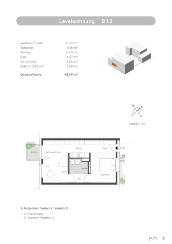 Gartenwohnung B 1.1 Levelwohnung B 1.2