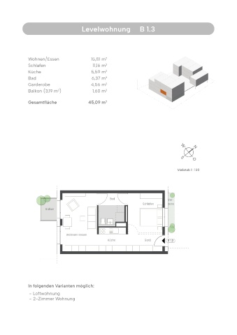 Levelwohnung B 1.3 Gartenwohnung B 1.4