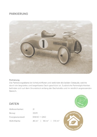 durch ein begrüntes und begehbares Dach geschützt ist. Zusätzliche Parkmöglichkeiten