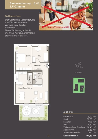 Gesamtfläche 109,80 m² 12 PLANINHALT Wohnung A-01 13 Gesamtfläche 84,80 m²