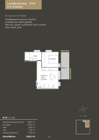 DachgeschossGartengeschoss 1. 39,5 m² Balkon (18,8 m²) B02 1. Obergeschoss1. Obergeschoss2. Obergeschoss B05 9,4 m² m² Wohnen/Essen/Kochen 26,60 m²