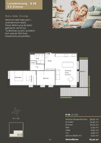 Wohnfläche 75,4 Wohnfläche 2,1 m² 34 Terrasse (18,8 m²) 9,4 m² 35 Wohnfläche B08 75,40 m²
