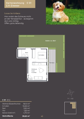 Windfang Gartenwohnung C 01 Garten ca. 45m² Flur Nebenräume Flur Gartenwohnung C 02 Zimmer Schlafen C 04a B 04a
