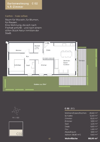 Windfang Gartenwohnung C 01 Garten ca. 45m² Flur Nebenräume Flur Gartenwohnung C 02 Zimmer Schlafen C 04a B 04a