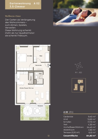 Gesamtfläche 109,80 m² 12 PLANINHALT Wohnung A-01 13 Gesamtfläche C 84,80 m²