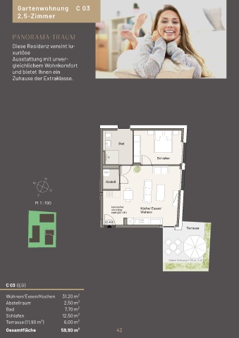 Wohnen/Essen/Kochen 31,20 m² N O BAUHERR Godel Planen + Bauen GmbH & Co.KG 17,00 m² Wohnung C-04