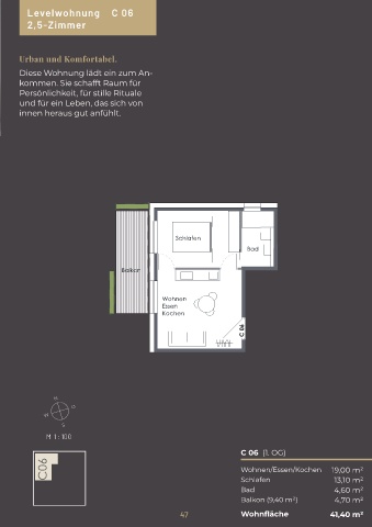 Wohnfläche 43,2 m² Wohnfläche 39,5 m² Kochen B02