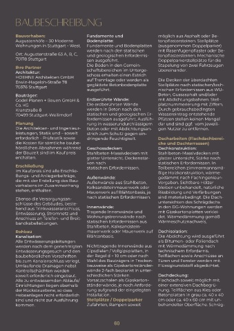 Wohnungen in Stuttgart - West. Fundamente und Bodenplatten (ausgenommen Doppelparker) Schrägdachs mit Betondachstei- mit Zählerpassstücken für den Nutzungseinheiten befindliche