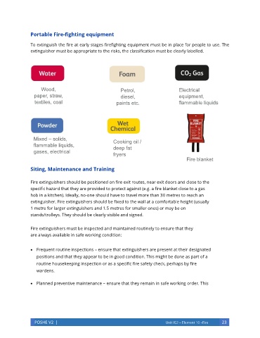 extinguisher must be appropriate to the risks, the classification must be clearly labelled.