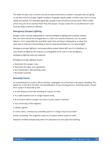 safely and quickly. For example, generally, escape routes should not be less than 750mm wide