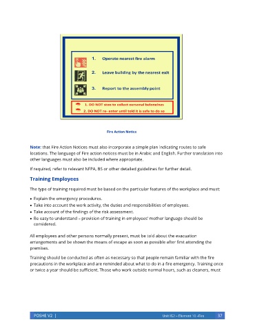 locations. The language of Fire action notices must be in Arabic and English. Further translation into