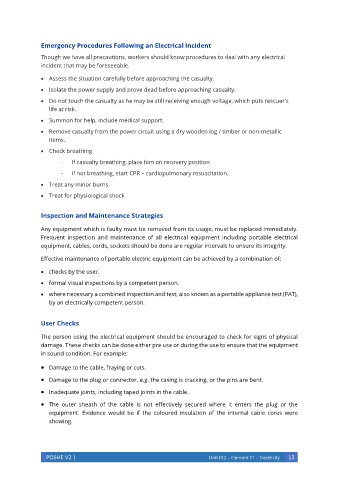 The person using the electrical equipment should be encouraged to check for signs of physical