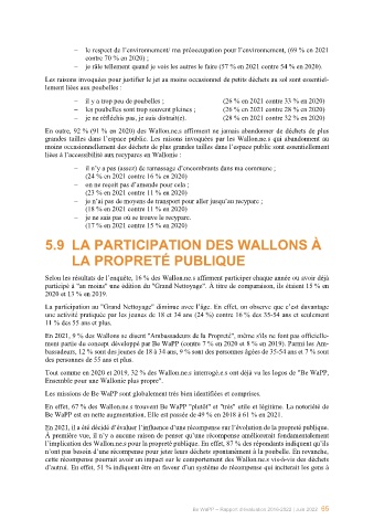l’implication des Wallon.ne.s pour la propreté publique. En effet, 87 % des répondants indiquent qu’ils