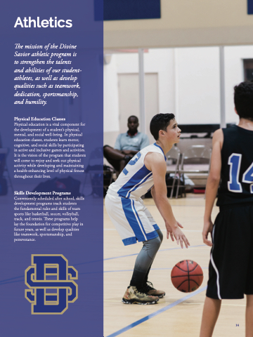 The mission of the Divine Savior athletic program is to strengthen the talents and abilities of our student- athletes, as well as develop qualities such as teamwork, dedication, sportsmanship, and humility.