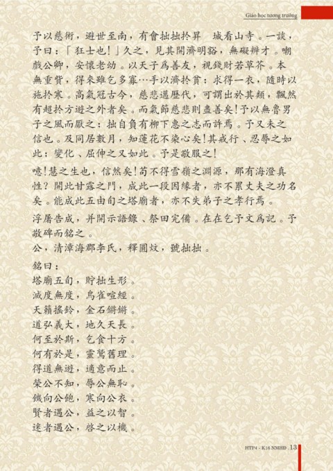有超扵方遊之外者矣。而氣節慈悲則盡善矣!予以無魯男