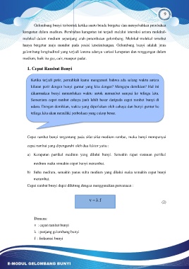 Cepat rambat bunyi dapat dihitung dengan menggunakan persamaan :