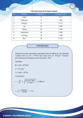 No. Medium Temperatur ( ) Laju bunyi (m/s)