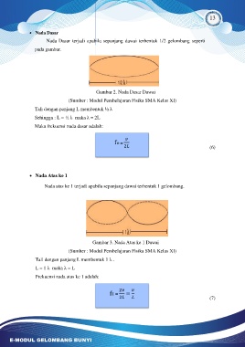 Nada Dasar terjadi apabila sepanjang dawai terbentuk 1/2 gelombang seperti