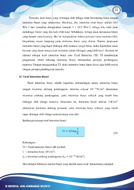 didengar oleh telinga manusia. Sementara itu, Intensitas bunyi sebesar 1