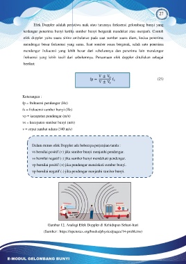 frekuensi yang lebih kecil dari sebelumnya. Persamaan efek doppler dituliskan sebagai