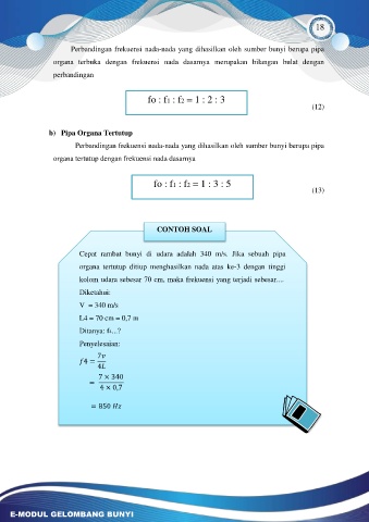 Perbandingan frekuensi nada-nada yang dihasilkan oleh sumber bunyi berupa pipa