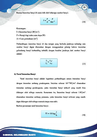 Taraf intensitas bunyi adalah logaritma perbandingan antara intensitas bunyi