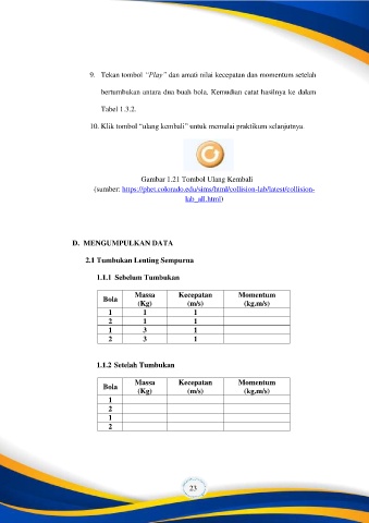 bertumbukan antara dua buah bola. Kemudian catat hasilnya ke dalam