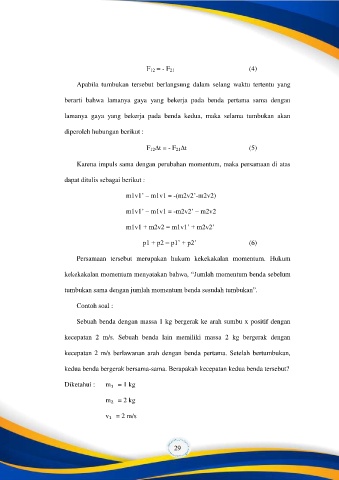 kekekakalan momentum menyatakan bahwa, “Jumlah momentum benda sebelum