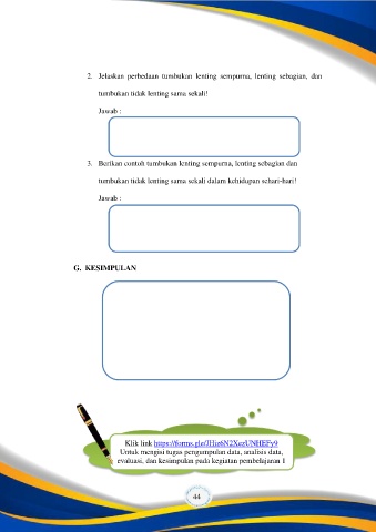evaluasi, dan kesimpulan pada kegiatan pembelajaran 1