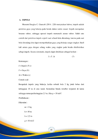 Menurut Dauglas C. Giancoli (2014 : 220) menyatakan bahwa, impuls adalah