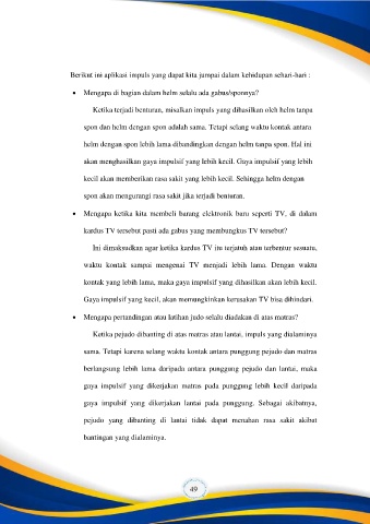kontak yang lebih lama, maka gaya impulsif yang dihasilkan akan lebih kecil.