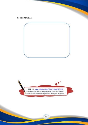 G. KESIMPULAN Klik link https://forms.gle/oCXQ1kyhn4feh76N8 Untuk mengisi tugas pengumpulan data, analisis data, evaluasi, dan kesimpulan pada kegiatan pembelajaran 1 62