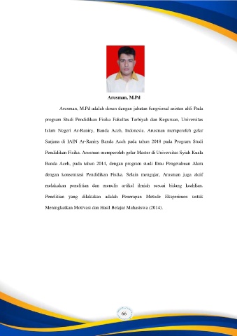 Pendidikan Fisika. Arusman memperoleh gelar Master di Universitas Syiah Kuala