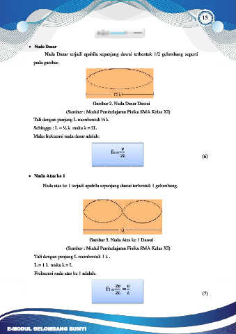 Nada Dasar terjadi apabila sepanjang dawai terbentuk 1/2 gelombang seperti