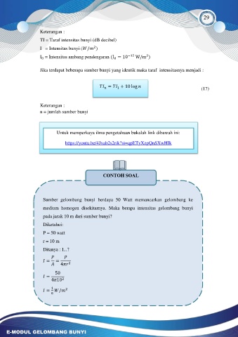 medium homogen disekitarnya. Maka berapa intensitas gelombang bunyi