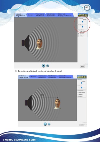 46 3) Kemudian aturlah jarak pendengar (misalkan 1 meter) 1 m E-MODUL GELOMBANG BUNYI