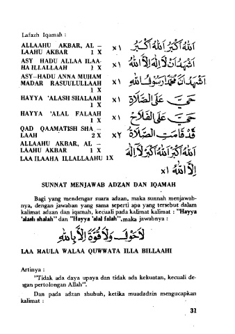 'alash slialah" dan "Hayya *alal falah", m aka jawabnya :