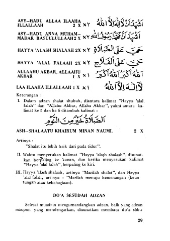 III. Hayya 'alash shalaah, artinya "Marilah shalat", dan Hayya