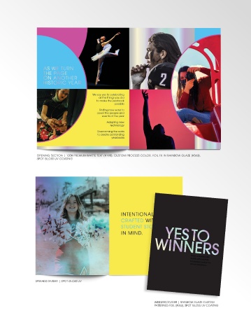 OPENING SECTION | 100# PREMIUM MATTE TEXT (#198), CUSTOM PROCESS COLOR, FOIL FX IN RAINBOW GLAZE [#363],