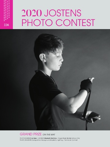 2020 JOSTENS PHOTO CONTEST 226 GRAND PRIZE ON THE MAT PHOTOGRAPHER AJ Bass | ADVISER Elizabeth DeVinny | Eagle Peak Middle School [CA] PHOTO ELEMENTS Composition: Background Simplicity, Lighting | Technical: Contrast