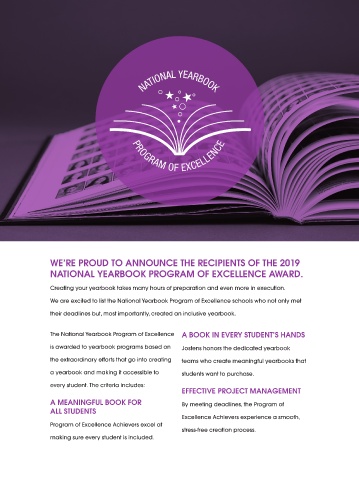 We are excited to list the National Yearbook Program of Excellence schools who not only met