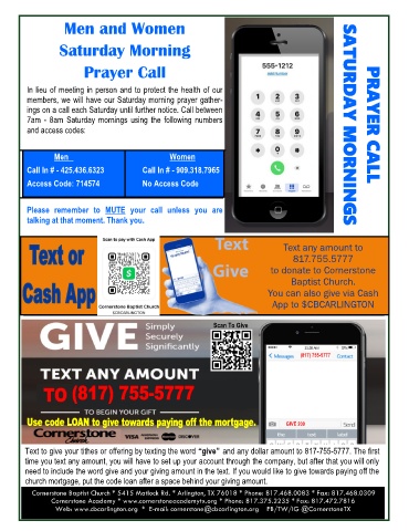 and access codes: SATURDAY MORNINGS PRAYER CALL