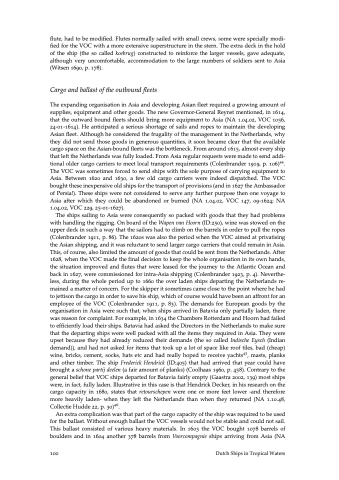 The VOC directors felt the need to control many aspects of the organisation, this extended to the choice of sites used for maintenance. They certainly did not want to spend too much money on the repairs in Asia if they could be done in the Netherlands. Vessels that regularly sailed back to Europe, retourschepen in particular were sheathed there, where enough materials and carpenters were available instead of using the more expensive and scarce resources in Asia. This policy also applied to bigger yachts and men-of-war, which, although they were due to stay in Asia longer than the retourschepen, were deliberately returned to the Netherlands for major maintenance. Governor-General Van Diemen (in Coolhaas , p. ) made the follow- ing recommendations in his report of : ‘construction and repairs to the ships in India cost the company big money and that the larger ships are not well maintained. It is therefore neces- sary that all substantial repairs to the ships will be exempt as much as possible and it be or- dered that the precious men-of-war and the larger yachts should be employed at sensible times their own people in Batavia. The logistical challenge was to have enough craftsmen, timber, tar, hair and nails available to sheath the vessel in a reasonable time. Given the extensive shipbuild- ing sector, this was not a problem in the Netherlands. In Asia, Batavia eventually became the best location for this work, since there was a regular supply of craftsmen and materials from the Netherlands supplemented with materials from the region, like jatij planks from Siam for the sheathing (Colenbrander , p. ). Other repairs Another common problem area was leaking at the waterline, or as it was known at the time ‘the area between wind and water’. Here, the planking was easily affected by rot. This type of dam- age could have major consequences because it was generally only discovered when the vessel was heavily laden. More problematic was when the discovery was made at the time the vessel had already left the port and was heeling on one side at a given point on its course with the troubled spot submerged. The consequences could be that the ship took on water, which would make it difficult to sail and put the vessel under serious threat. This happened with the yacht Avondster (ID:) when it left for the second time to the Netherlands in . The yacht was discovered to leak severely when it sailed over a certain side. Eventually it was decided to sail back to Batavia because: ‘\[...\] desselfs ranck- ende leckheit, opdat bij voortzeijlen geroerde costelijck geladen schip ende soo veele sielen niet als voorbedachelijck den zee ten proije te geven’. \[The instabil- ity and the leaking, by continuing the sailing this precious loaded ship and so many souls not by purpose to offer as a price to the sea\] (De Hullu , p. ). Whether a ship could sail was dependant on how the ship was loaded and also on the condi- tion of the crew – if they were not fit enough to pump the ship dry then the ship was lost (Coolhaas , p. ; Colenbrander , p. ). Repairs, by the onboard ships’ carpenters, were reasonably simple following partial unloading or careening the vessel. However, it was first necessary to reach a port or anchorage. If the whale, a heavy construction element on the outside of the ship, had to be replaced more specific skills for handling heavy timber and mate- rials were required. The ship’s internal construction was also in need of regular maintenance. One of the biggest problems for the VOC was dry rot (decay of timber by fungus) exacerbated by the humidity in the packed holds under tropical conditions. The only remedy – ventilation and pickle – was difficult to combine with the VOC policy of keeping their fleet sailing rather then have it wait- ing empty in a port. Only in the Netherlands could vessels stay idle for a longer period. In Asia the VOC must have weighed the cargo capacity against the longer lifespan of their fleet. Construction problems could also occur inside a vessel due to heavy sea conditions. In the flute Trouw (ID:) was caught in a storm near Taiwan. Apart from the external damage, as homeward-bounders’. Smaller vessels could be maintained in Asia . If sheathing to these ships was unavoidable, the VOC preferred to execute these works with The shipping and logistics in operation