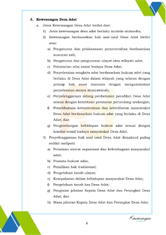a. Jenis Kewenangan Desa Adat terdiri dari:
